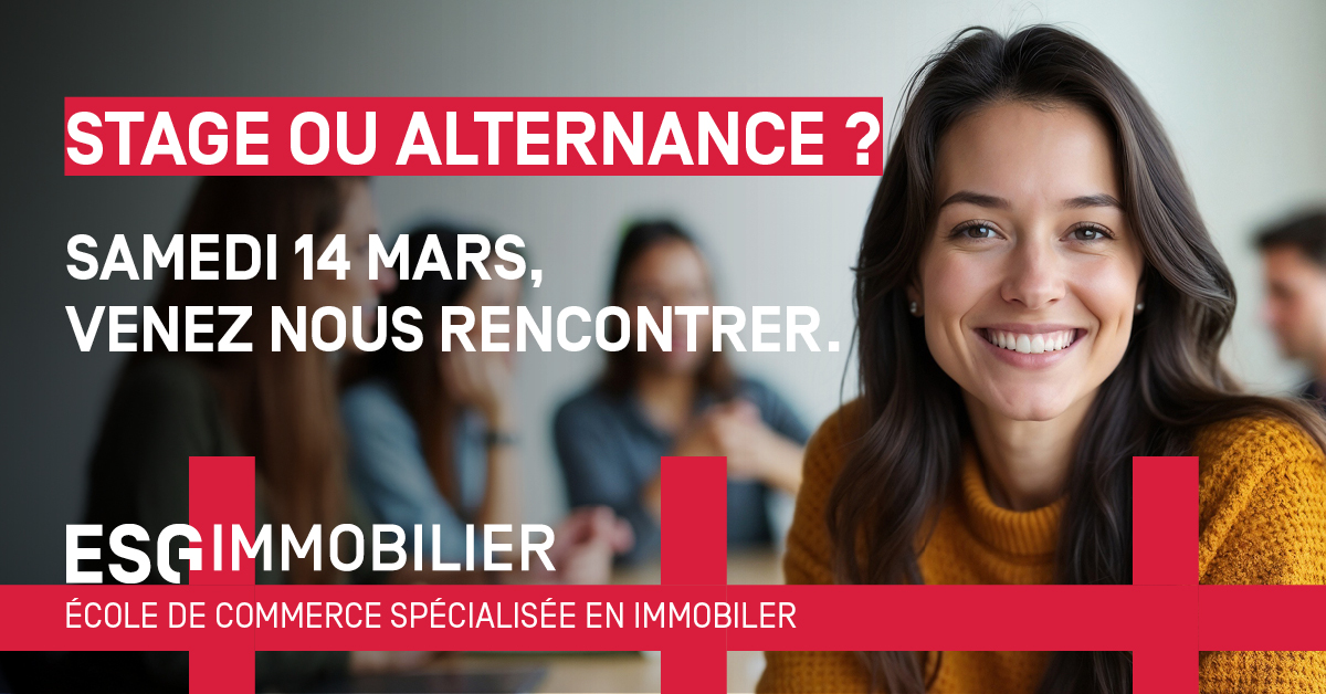 Le 14 mars, découvrez l’ESG Immobilier et toutes les clés pour intégrer une formation professionnalisante, du post-bac au Bac+5, conçue pour vous préparer concrètement aux métiers de l’immobilier. Plus qu’une simple visite, une journée entièrement tournée vers votre employabilité.
